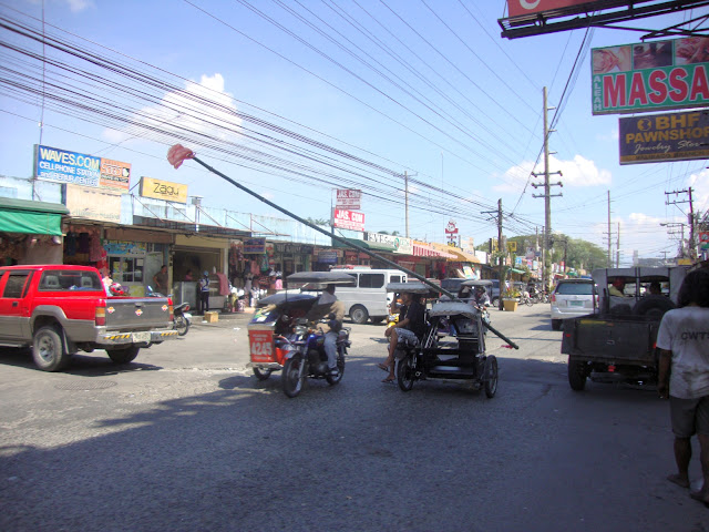 Riksakyyteihin tottuneina päätimme riipasta ja ottaa yhden hevosvoimaisen kulkuvälineen. Näin pääsimme näkemään keskusta-alueet ilman suurempaa suunnistamista. Myös hevoskärryjen kuski näytti parhaat tai olennaiset paikat keskustasta. Itse pidin kyydistä, koska menimme myös syrjäisille kujille, joille ei olisi ilman opasta viitsinyt lähteä edes päiväsaikaan. Paikalliset kantoivat usein asetta esim. vyön alla ja yhden näin heiluttelevan kromista revolveria. Paikalliset miehet kävelevät usein myös paita ylhäällä, joten he samalla osoittivat olevansa aseettomia. Muutenkin köyhyyden myötä tulevat sosiaaliset ongelmat näkyivät jonkin verran Cebun syrjäkujilla. Filippiineillä on ostoskeskusten ja muiden suurten rakennusten luona aseille omat talletuspisteet siksi aikaa, kun asioi liikkeissä, kätevää. Filippiiniläiset ovat myös ylpeitä demokratian tasostaan ja heillä on sitä kuvaava lause: "Gold, guns and goons".